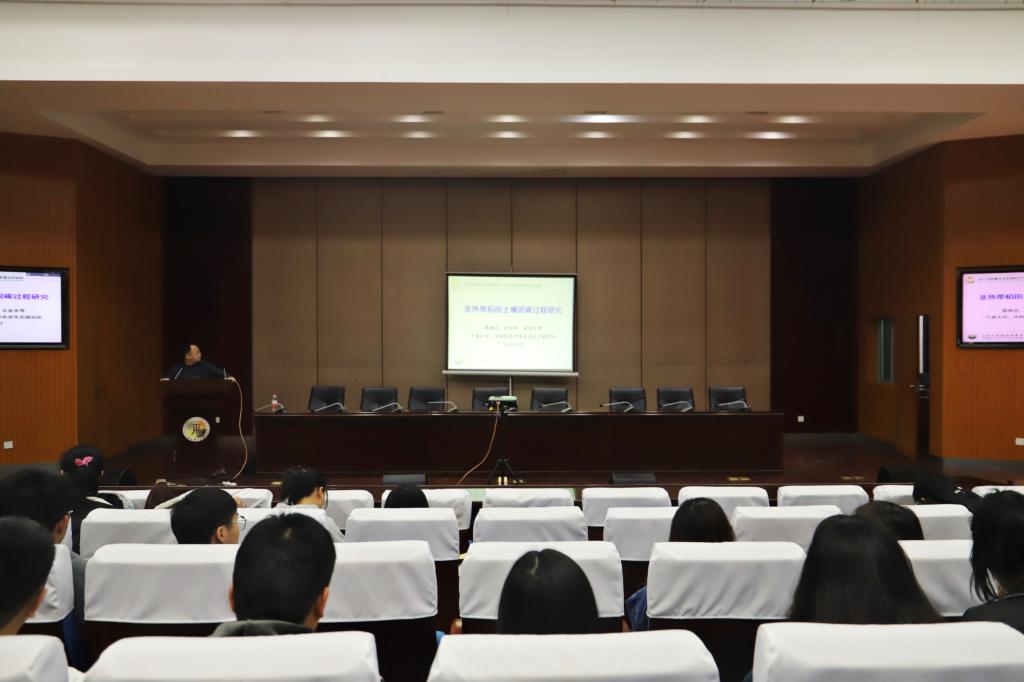 葛体达通过列举世界各国二氧化碳排放量数据,讲解碳中和的好处以及如何达到碳中和的方法引出了此次学术讲座的主题。随后,葛体达概括了我国水稻土占地情况,说到:“稻田固碳是一把‘双刃剑’”,并利用亚热带稻田土壤碳化详细的实验数据解释了这一观点。