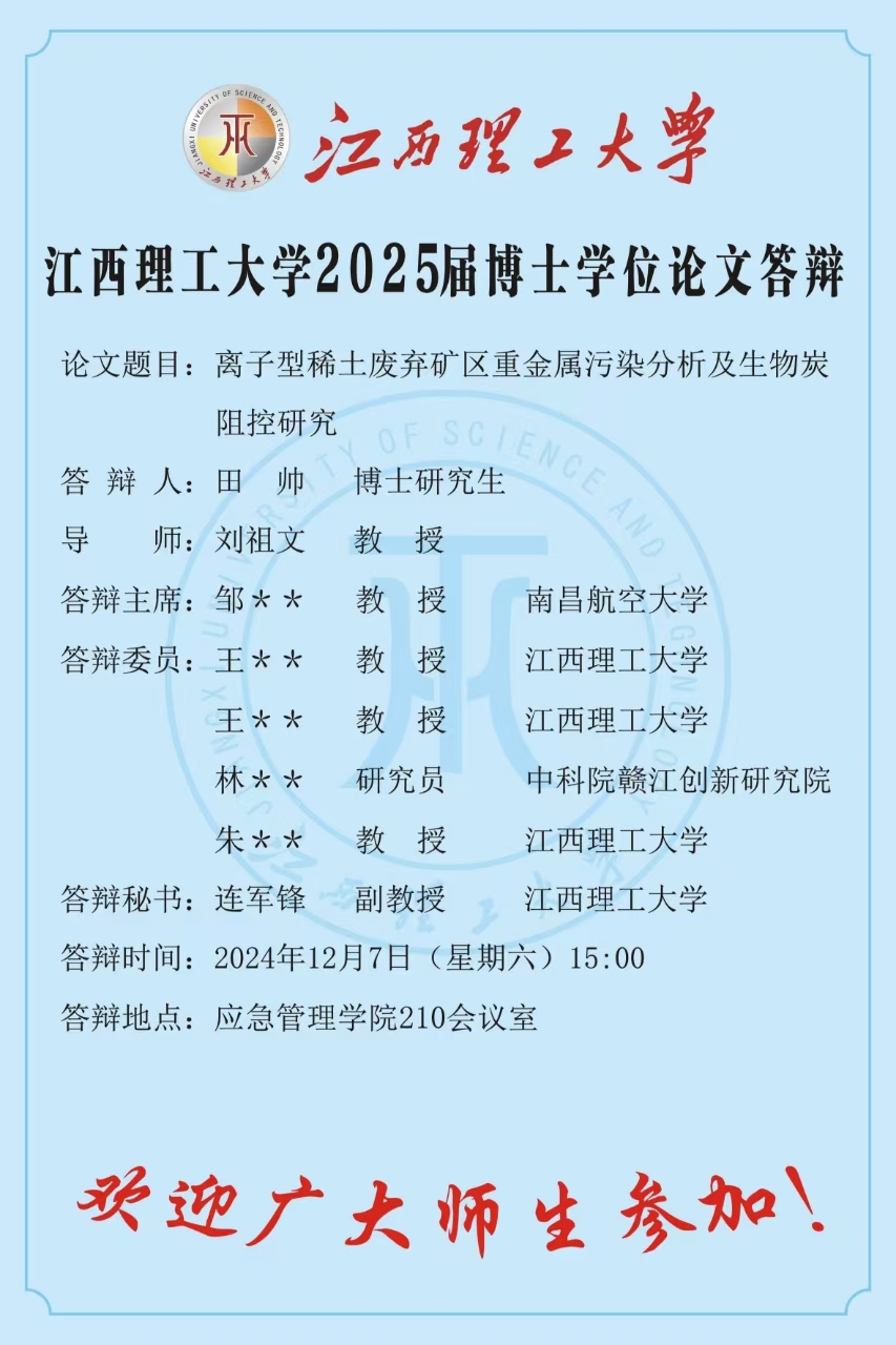 江西理工大学2025届博士学位论文答辩(田帅)