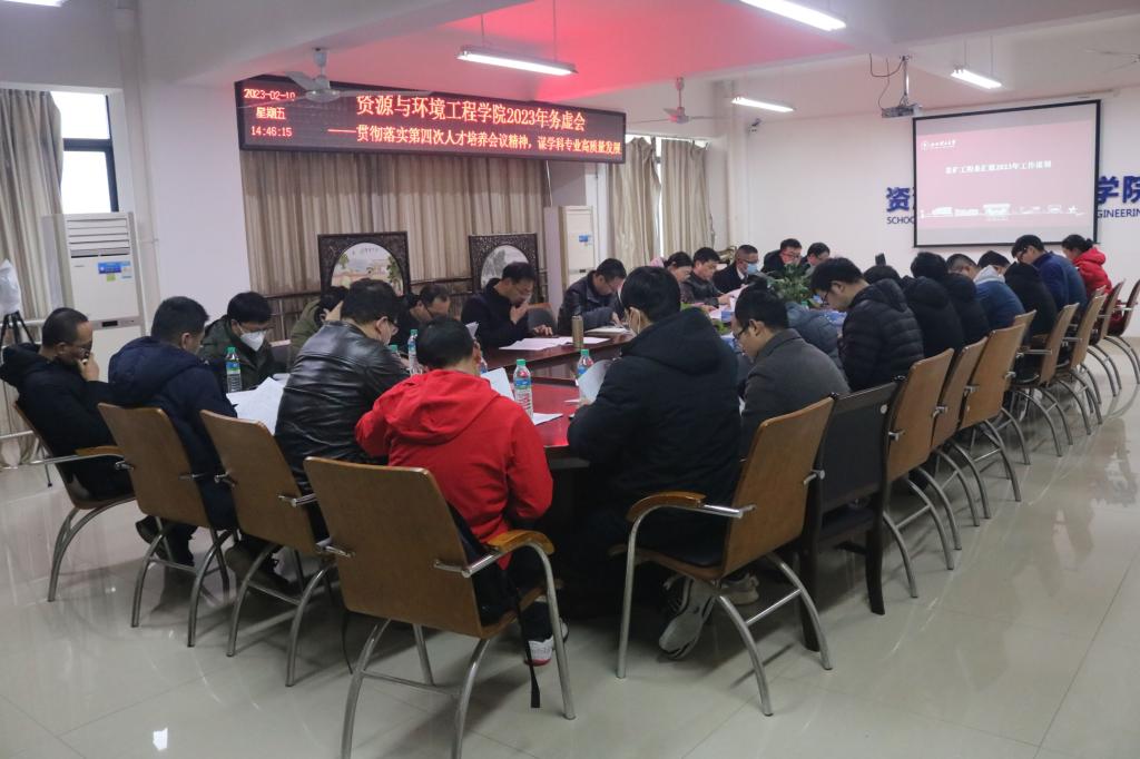 首先,采矿工程系主任曾鹏作“立德树人,强化人才”为主题的发言。他根据学生学习生活一体化为基础,提出建设学生事务服务中心,守护学生健康成长平台。紧接着,矿物加工工程系主任冯博、环境与生物工程系主任董伟、地质工程系主任何书围绕学科建设、科学研究、专业建设、本科教学、研究生培养、学生工作、实验室工作、师资队伍等多方面汇报了2023年工作谋划。