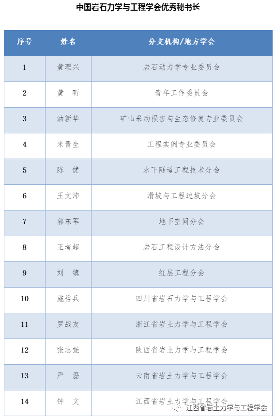 本网讯 8月28日,中国岩石力学与工程学会召开了第九届理事会第38次党工委会议,审议通过并发布了《关于表彰先进单位及优秀个人的公告》,由我校作为支撑单位的江西省岩土力学与工程学会相关工作得到广泛认可,我校资源与环境工程学院采矿工程系副教授、江西省岩土力学与工程学会秘书长钟文老师获评为中国岩石力学与工程学会优秀秘书长。