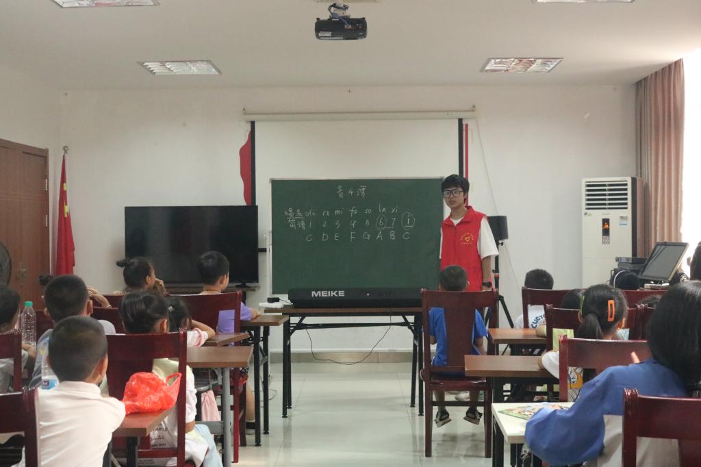 乐理知识普及课上,声歌队成员向孩子们普及自然大调的音阶唱名、简谱表示、五线谱表示、字母表示、五声音阶等乐理知识,培养孩子对课外乐理知识的学习兴趣,让孩子们感受音乐的美。最后,志愿者带领全体小朋友一起合唱了《小星星》这首经典曲目。