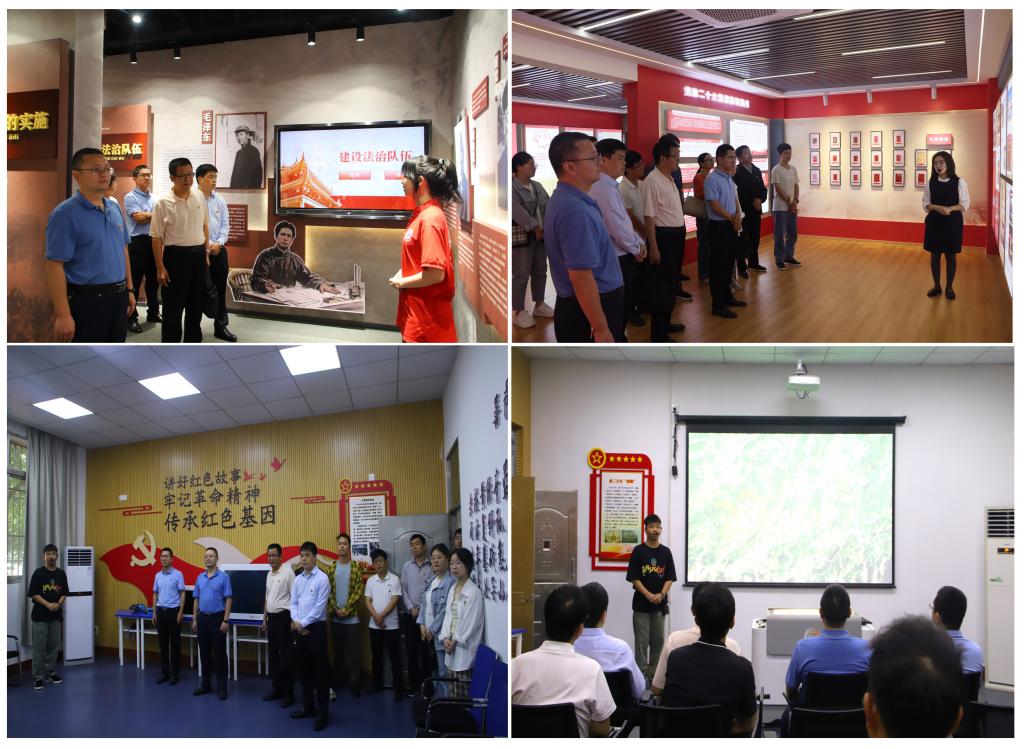 随后,我院班子成员、各支部书记、党员代表统一乘车前往相关场馆进行实践学习。在赣州市党章教育馆,深入学习了党章知识并了解了党章历史沿革;在红旗校区法学院法治教育基地,参观学习法律法规知识,增强法治观念;在红色VR教育基地,深刻感受赣南红色文化,追寻红色足迹。