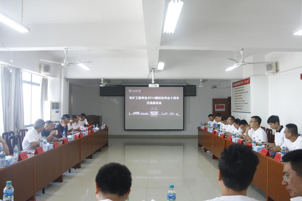 本网讯 10月2日,采矿工程04届及14届校友们在毕业20周年、10周年之际重返母校,并分别于黄金校区逸夫楼第一会议室和第二会议室展开座谈会,赣南科技学院副校长何锦龙、资源与环境工程学院党委副书记张春雷,应急管理与安全工程学院副院长王晓军等相关领导和采矿专业相关教师参加了座谈会。