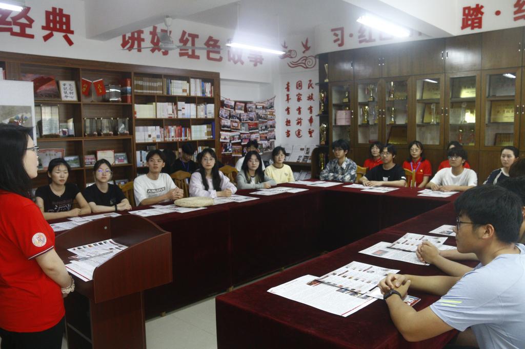 会前,信息工程学院蒋越一行人参观了学院的红色书屋和大学生红色文化宣讲团,聆听了红色矿业故事。