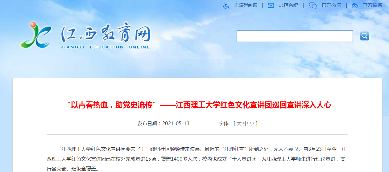 《千里回师入兴国》、《视死如归的张团长》、《钱壮飞—龙潭虎穴建奇功》……40多个红色故事通过线上公众号、线下宣讲的方式带出了校门。居民区、小学、幼儿园……,你总能在赣州市的各个社区发现宣讲团的身影。他们声情并茂地讲述红色故事,一丝不苟地传播红色党史。