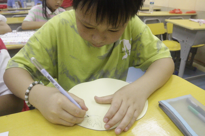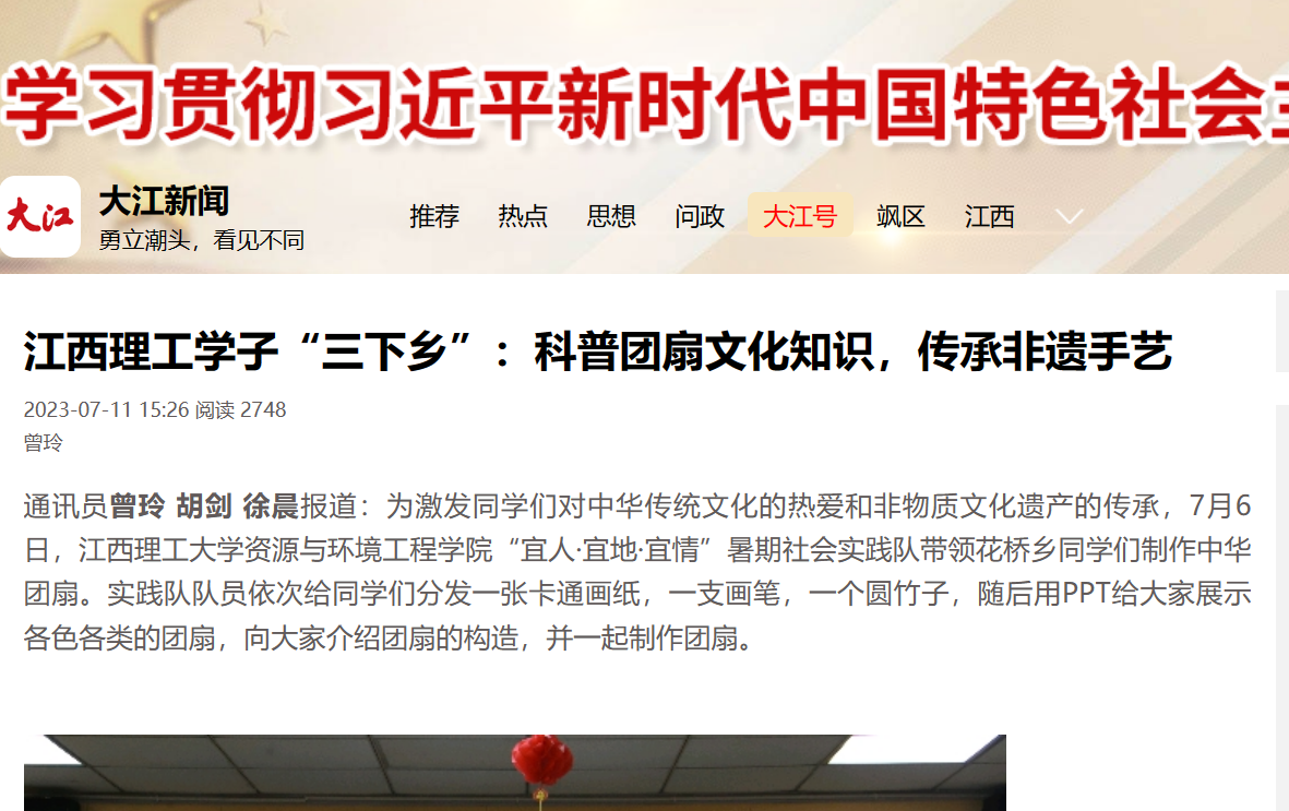 通讯员曾玲 胡剑 徐晨报道:为激发同学们对中华传统文化的热爱和非物质文化遗产的传承,7月6日,华体会网页版登录入口“宜人·宜地·宜情”暑期社会实践队带领花桥乡同学们制作中华团扇。实践队队员依次给同学们分发一张卡通画纸,一支画笔,一个圆竹子,随后用PPT给大家展示各色各类的团扇,向大家介绍团扇的构造,并一起制作团扇。