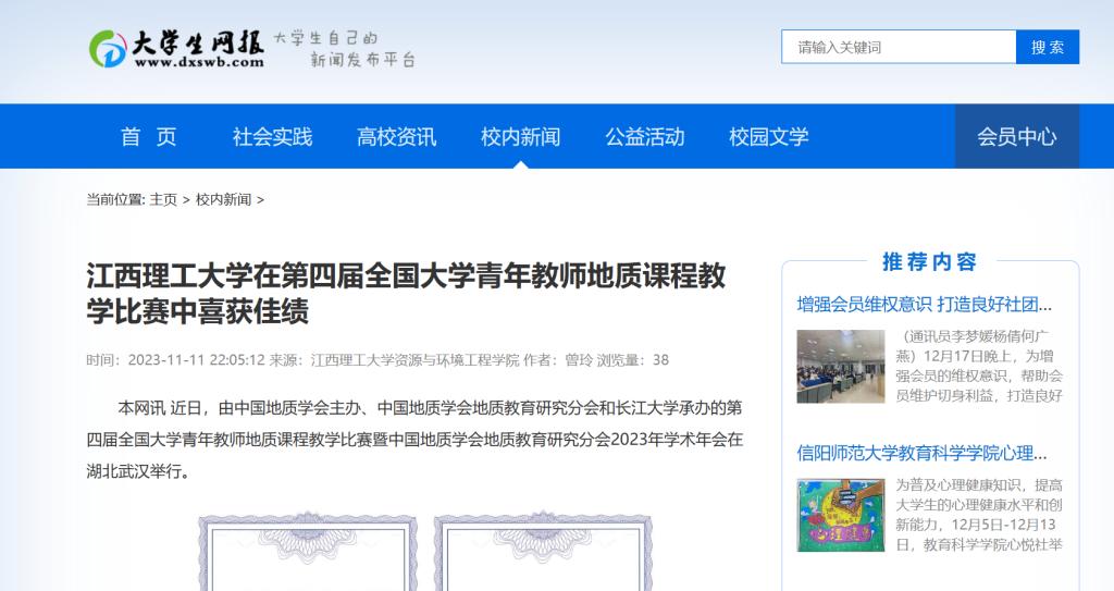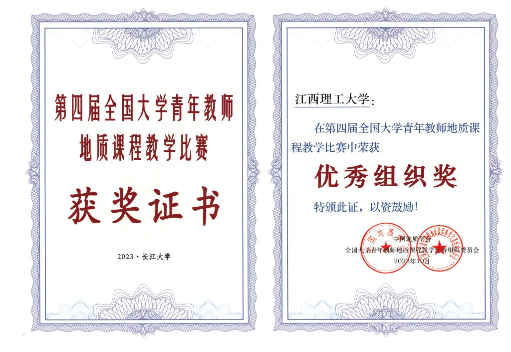 在青年教师地质课程教学比赛中,来自全国69所高等院校的176名青年教师,组委会和专家仲裁组90余位专家、教学名师参加了本届比赛决赛,经过激烈的比拼,华体会网页版登录入口选派的青年教师刘强博士、李瑞雪博士、黄震博士凭借出色的表现,均荣获全国二等奖,充分展现了江西理工大学青年教师在高等教育领域的突出实力和优秀教学水平。此外,江西理工大学还荣获“优秀组织奖”。