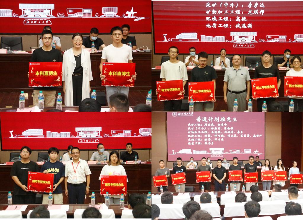 大会还举行了本科生推免表彰仪式。仪式上,陈明、何桂春、陈飞和余新阳分别为直博生、稀土专项、国防专项和普通计划推免生颁发证书。