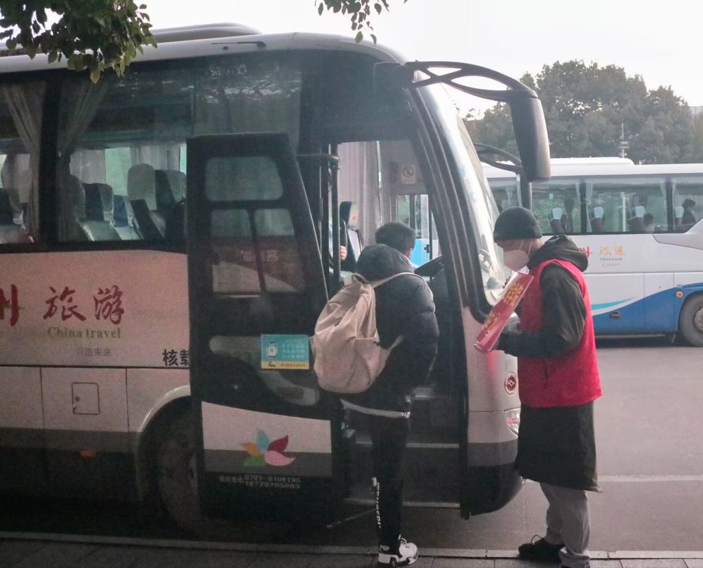 天还未亮,资源与环境工程学院各处就已经开始忙碌起来了。志愿者们早早将学院准备好的爱心早餐和口罩搬到宿舍门口,并分发到每一位考研学子的手上,接着,志愿者引导考研学子上学院专用考研接送车。