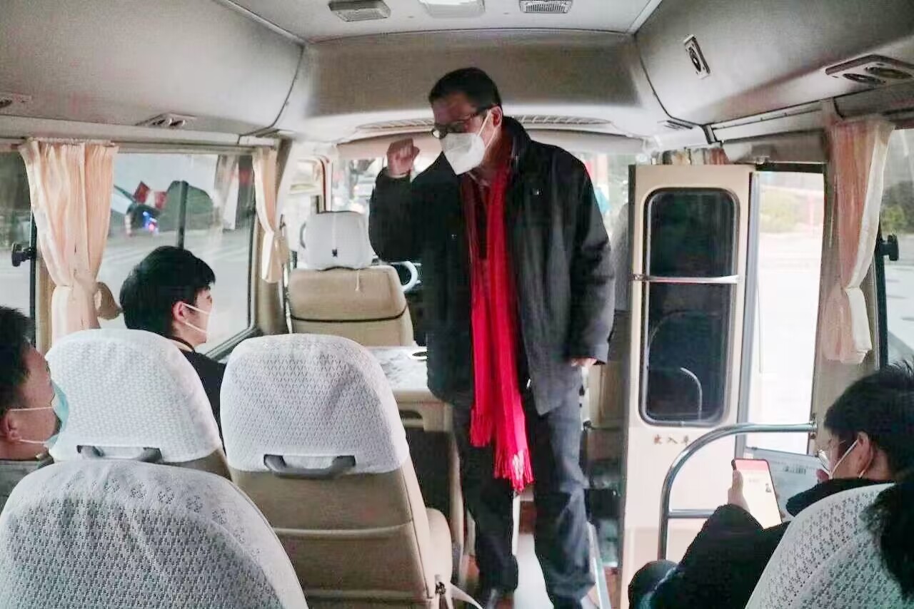 陈飞在车上对考研学子鼓励说道:“你们必将翼展宏图,研途璀璨,考研加油!”。他还特意戴着一条寓意着“红红火火、鸿运当头”的红围巾,希望这条红围巾能给考研学子带来好运。
