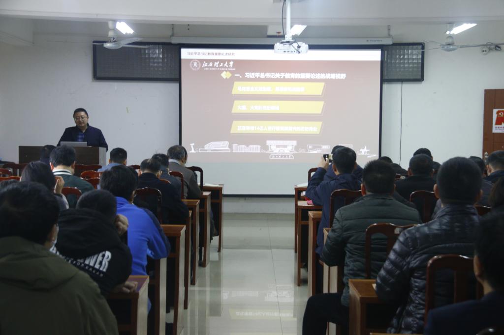 会上,陈明领学了习近平总书记考察江西重要讲话精神,他指出,江西省正在打造“三大高地”、实施“五大战略”,学院要抓住机遇与挑战,为江西发展贡献力量。他还带领全体教职工学习了习近平总书记关于教育的重要论述,他强调,教育工作者要深刻理解科教兴国战略、人才强国战略、创新驱动发展战略;要将教育与中华民族伟大复兴紧密相连。陈明指出,教育是强国建设、民族复兴的重要基石和有力支撑,教育的关键还是在教师,全体教职工要强化理论学习,不断提升师德师风,助理教育高质量发展。陈明还在大会上强调了消防安全,要求全体教职工要率先垂范,构建平安校园。