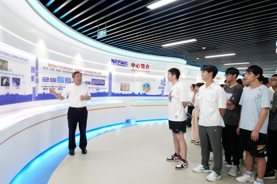 同学们怀着满腔热情,乘坐大巴抵达创新中心。尽管夏日炎炎,但大家的求知欲却丝毫不减。在罗仙平的引领下,同学们首先踏入了科技氛围浓厚的“S”型长廊。长廊两侧的展板,详尽展示了稀土功能材料在多个领域的广泛应用及其重要性罗仙平逐一解读,深入浅出地讲解了创新中心的组建过程、专家成员、稀土的分布及种类、以及中心的科研成果等内容。同学们听得如痴如醉,对稀土科技的魅力与力量有了更为直观的认识。