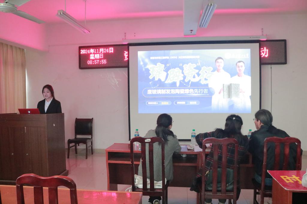 经过激烈的角逐,生物222班陈娟娟等人的作品“化微无油——微生物多孔材料构筑及废油吸附性能研究”、环境222班袁国栋等人的作品“‘璃’辟‘瓷’径——废玻璃制备发泡陶瓷绿色先行者”、环境213班黄慧宏等人的作品“稀世珍孢——芽孢杆菌回收稀土离子新技术”荣获一等奖;矿业232班赵飞宇等人的“钻取先锋——多参数信息采集与分析系统”等6项作品荣获二等奖;采矿242班谢金鹏等人的“‘岩’之精准——修正非均匀岩层对三下开采沉降计算误差”等9项作品荣获三等奖;地质241班邓照山等人的“智绘根金,稀土新篇——一种基于机器学习的矿山植物吸金预测技术”等15项作品荣获优秀奖。