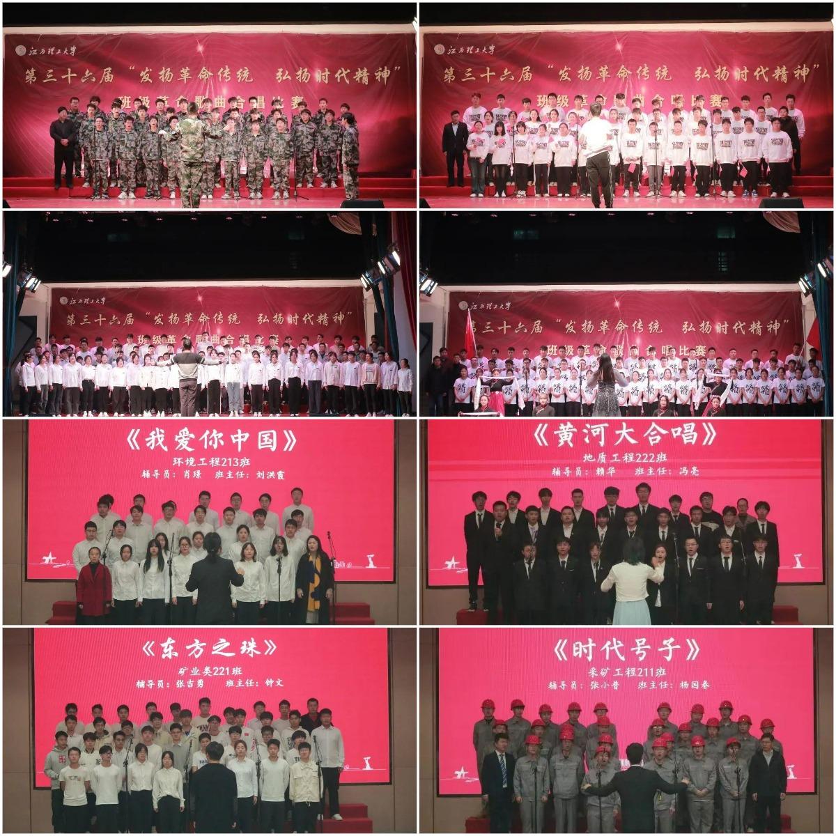 经过激烈的角逐,新生组,2023博硕士研究生班、西藏天仁矿业政企委培班、生物232班荣获一等奖;环境232班、环境233班、矿业233班、地质231班获得二等奖;矿业232班等班级获得三等奖;生物232班肖霜获得最佳指挥奖、矿业232班赵飞宇获得最佳朗诵奖、环境233班郭帅麟获得最佳领唱奖。老生组,矿业224班、采矿212班、采矿(中外)211班、环境211班荣获一等奖;环境221班、矿业222班、生物221班、矿业221班、采矿211班、生物222班、矿加212班荣获二等奖;环境223班等班级荣获三等奖;环境211班匡奕获得最佳指挥奖、采矿(中外)211班王宇燊获得最佳领唱奖、生物221班潘康获得最佳朗诵奖。