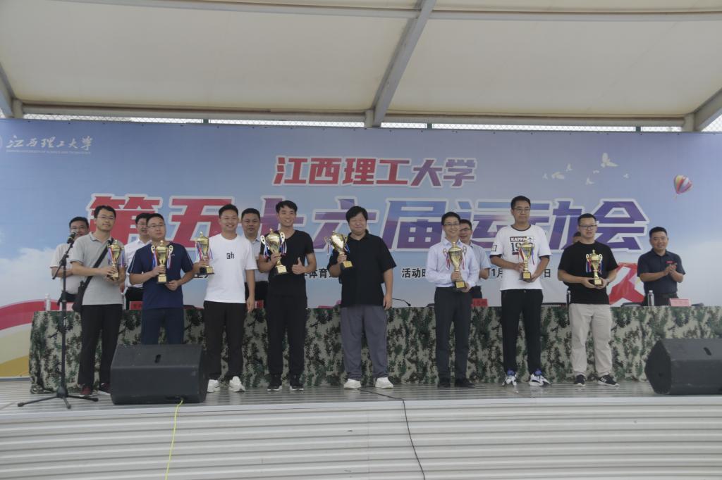 教工组,郭小飞老师获得男子3000米、男子1500米第一名;梁颜祯老师获得男子托球跑第一名;郭燕华老师获得男子乙组跳远、200米、800米第一名;张春雷、余新阳、董伟等老师获得男子教授抱球接力第一名;魏铭聪、郭小飞,吴尧尧等老师获得男子摸石头过河第一名;唐学昆老师获得男子100米第一名;郭小飞、罗才贵老师获得男子阳光伙伴跑第一名。