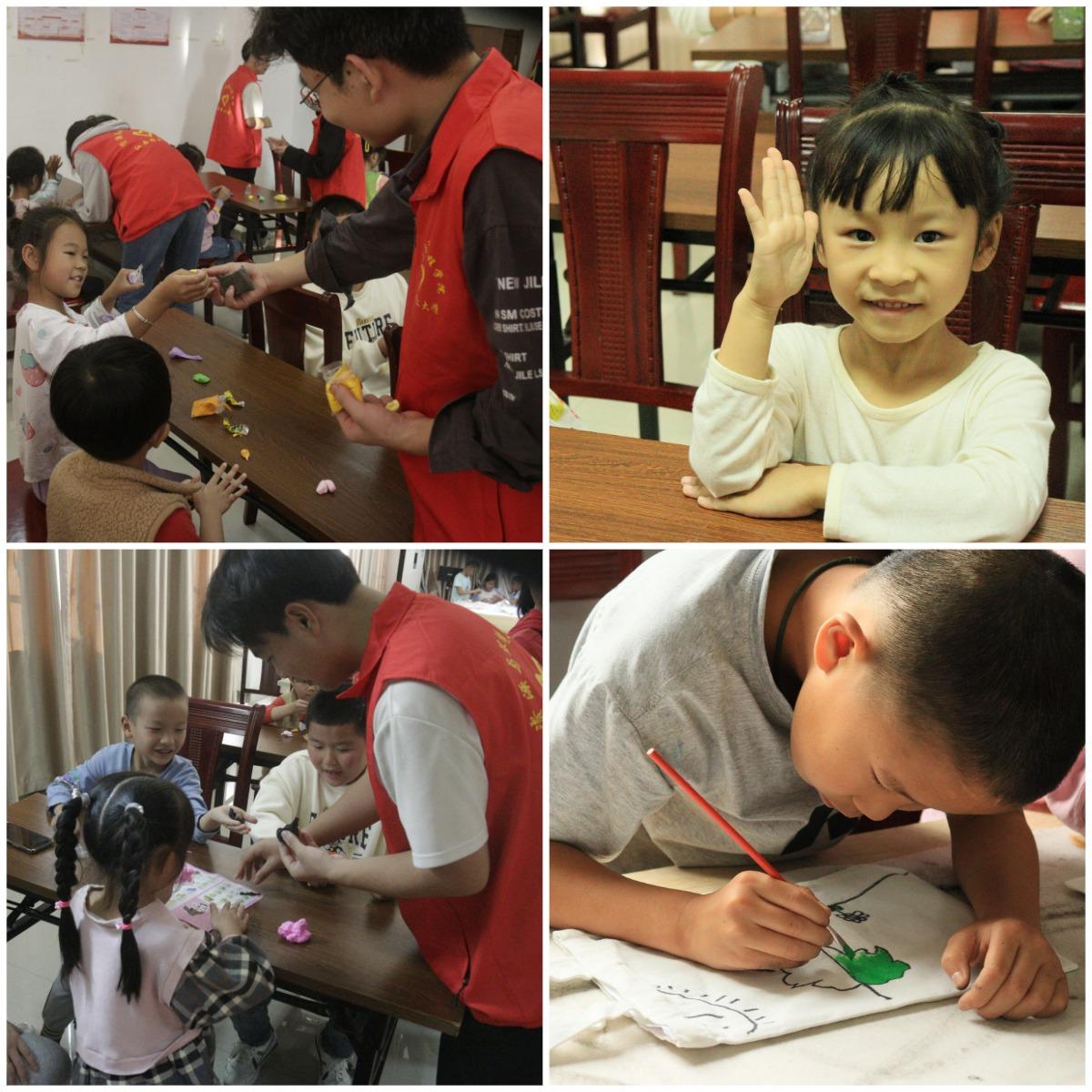 趣味手工课上,志愿者通过向孩子们介绍美食种类,并请孩子们回答这些美食需要用到那些原材料,来增加孩子们对中华美食的认知度和关注度。还让孩子们用彩泥制作出自己喜欢的美食,从而锻炼出孩子们的动手能力和想象能力。