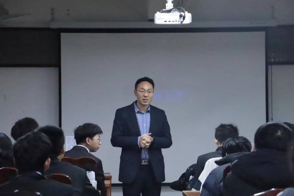 饶先发介绍了“大江环科”创新创业项目奖励基金的由来,他激励同学们要积极踊跃地参与创新创业活动,培养创新创业思维,为今后的发展奠定一个良好的基础。他对同学们的辛苦付出表示肯定,并表示学院也十分鼓励和支持本科生创新创业项目,在经费保障、技术指导等方面都会对同学们给予大力支持。