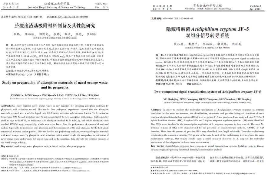 男,1976年5月生,博士,副教授,硕士生导师,江西省微生物学会会员,华体会网页版登录入口生物工程教研室主任。1999年和2004年分别获得江西农业大学农学学士学位和微生物学硕士学位,2012年3月获得上海交通大学生物医学工程(生物技术)专业博士学位,2013年9月至2014年9月美国伊利诺伊理工大学访问学者。目前主要从事环境微生物及固废资源二次开发利用等领域研究,主要涉及微生物冶金、废水微生物处理技术、农业固废微生物转化处理技术等;近年来先后主持国家基金项目、省部级项目、重点实验室开放基金项目等10余项,发表学术论文40余篇,其中高水平论文/EI收录论文14篇。