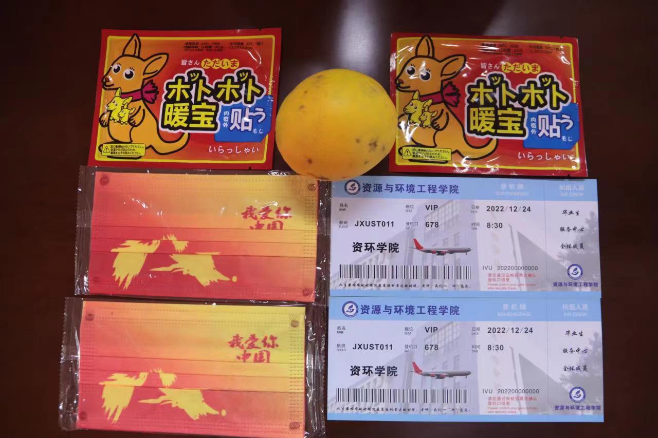 陈明希望同学们能够平稳应考,保持心态。随后,院领导为考研学子分发了学院准备的礼品袋,礼品袋中包含了脐橙、学院专属考研“机票”、暖宝宝以及口罩,每个礼品都有着其特别的寓意。脐橙又大又圆,象征着各位学子们辛勤付出后将收获的又大又圆的胜利果实,专属定制“机票”代表着每位学子最后都将被送往理想学校,而暖宝宝与口罩则是在冬日给学子们带来了温暖与健康。