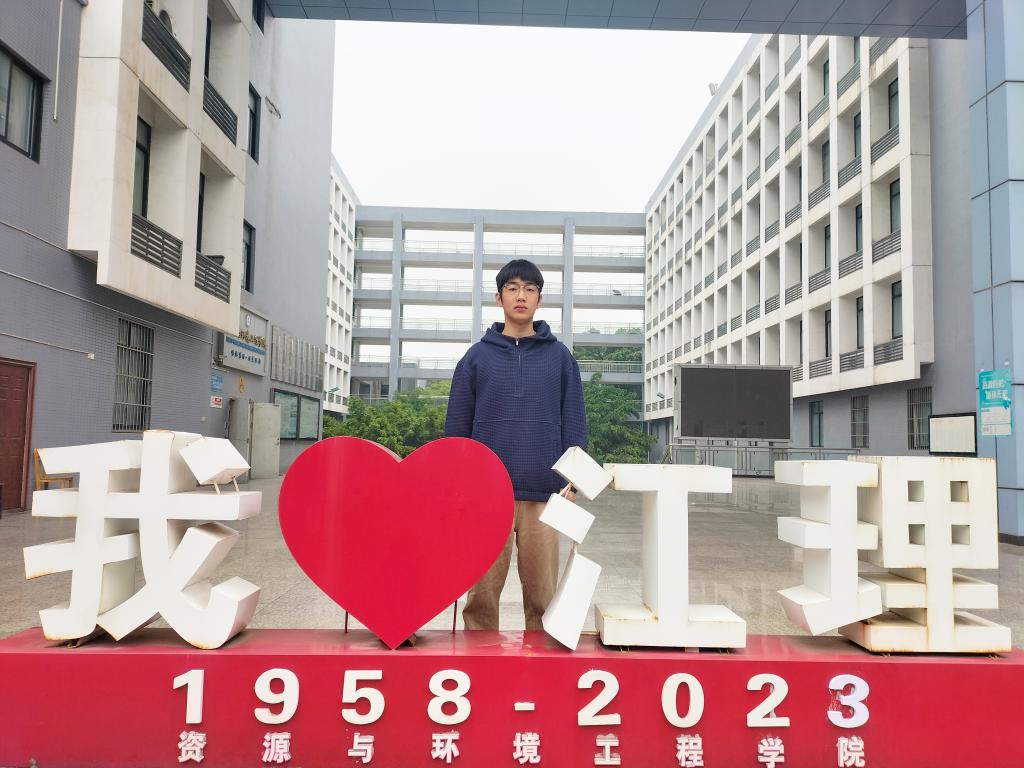 他努力学习,通过学院本科生科研团队遴选,加入本科生导师实验室,充实自己。他科研的内容是碳热还原法制备硫化零价铁材料处理有机污染物效能研究,并成功发表专利“一种具有核壳结构的硅酸盐负载型微纳米硫化零价铁及其制备方法和应用”,发表论文Preparation of Fe-Cu bimetal from copper slag by carbothermic reduction–magnetic process for activating persulfate to degrade bisphenol A,与此同时他有1篇1作中文核心在投,1篇2作中文核心在投,1一篇sci五作在投,人们只惊叹他获得无数荣誉,却不知这是他日夜苦心钻研所换得的。科研的道路并不都是一帆风顺的,总是充满着坎坷与曲折。一次次的实验,一次次的失败,繁杂无序的实验结果,让他陷入了深度的自我怀疑,无数次校对实验结果的瞬间曾经令他一度产生过放弃的想法,但是,他想到自己这么多且艰难的路都走过来了,难道就要在这个时候选择放弃吗?最终,他重新思考,仔细耐心检查每一个实验步骤,经过老师和师兄的指导,终于发现了实验问题所在,改正错误之后获得了良好的实验成效。“科研就如同人生一般,人生路上有沟沟坎坎很正常,跨过去就总会迎来好的一面”他感慨道,无论是对科研还是对人生的态度,他坚信彩虹总在风雨后。