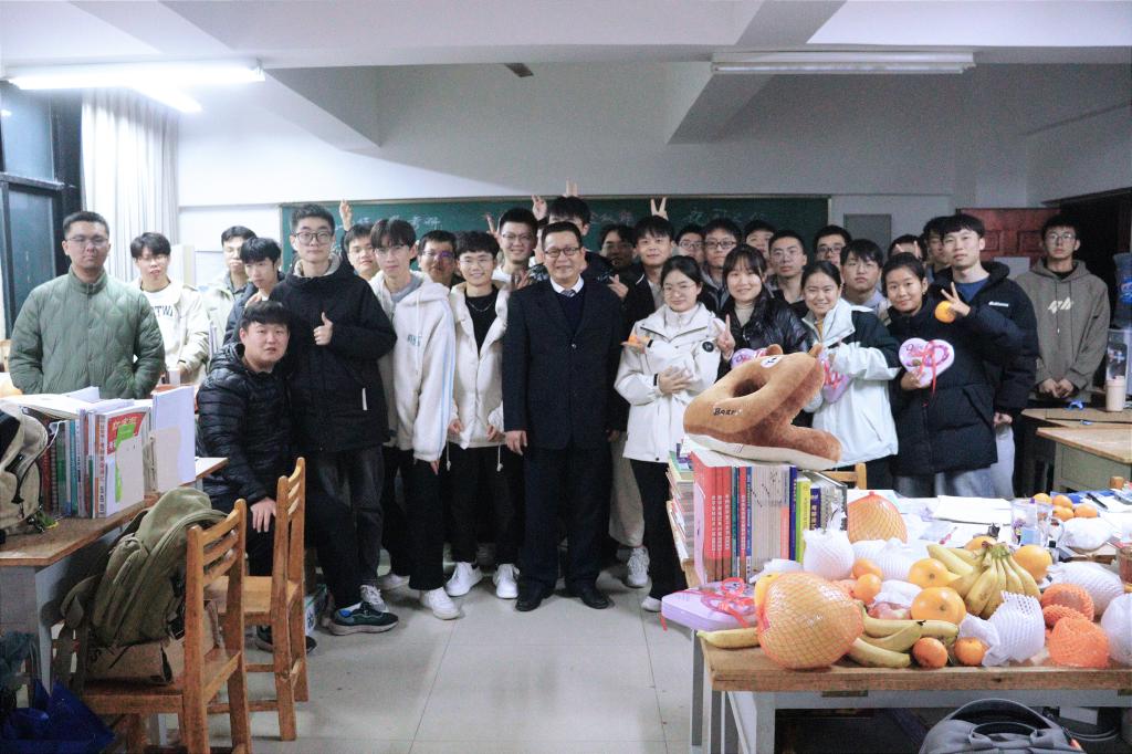 当谈及考研前紧不紧张时,地质201班黄骏麒说:“其实还好,在班里良好的备考氛围下,准备的还是很充足的,而且还有‘大飞哥’的水果祝福,动力满满!”。“大飞哥”叫陈飞,是地质专业的一名老师。2023年12月4日,临近考研,陈飞已经连续坚持14年为地质专业的学生送上考研水果祝福,为学子们加油打气,同时即兴为地质专业的学予以《天道酬勤,研途似锦》为题,写下“天随人愿研琢真,道远知骥途程深。酬辩如流似弦箭,勤学善思锦绣春”这一首考研祝福诗。地质201班王伟棋说:“‘大飞哥’的祝福就像充电宝一样,为我的内心充电,减轻了我一年备考疲劳,感谢‘大飞哥’!”。青春似水流年,这一段回忆终将是地质201班埋藏在心理深处的珍贵宝藏。