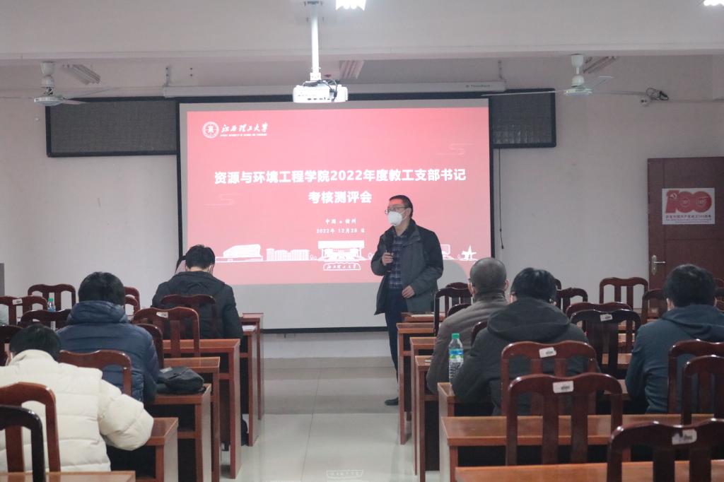 本网讯 12月28日下午,资源与环境工程学院于黄金校区逸夫楼第二会议室召开教工支部书记抓党建工作述职及测评会议。资源与环境工程学院党委书记陈明、院长何桂春、党委副书记饶先发、副院长陈飞、余新阳以及党委委员、各支部党员代表参加此次会议。会议由陈明主持。