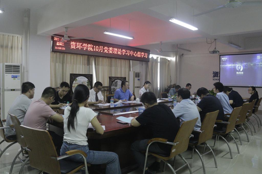 本网讯 10月25日,我院于黄金校区逸夫实验楼第一会议室召开10月党委理论学习中心组学习会。我院在家院领导党委书记陈明、院长何桂春、党委副书记张春雷、副院长陈飞以及学院党委委员、师生党支部书记参加了学习会。会议由陈明主持。