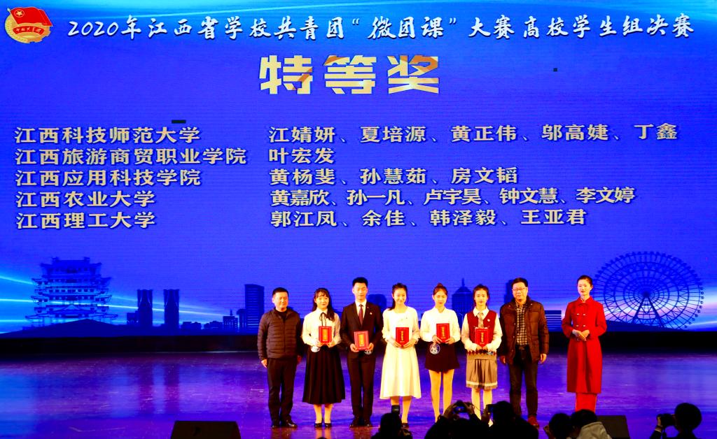 本网讯近日,由共青团江西省委主办的2020年江西省学校共青团“微团课”大赛高校学生组决赛在南昌圆满结束。资环学院大学生红色文化宣讲团成员代表学校在高校学生组决赛中获得全省特等奖。