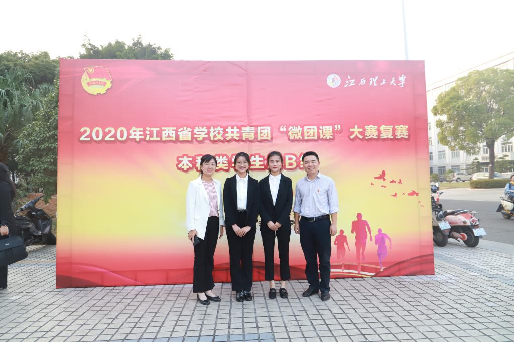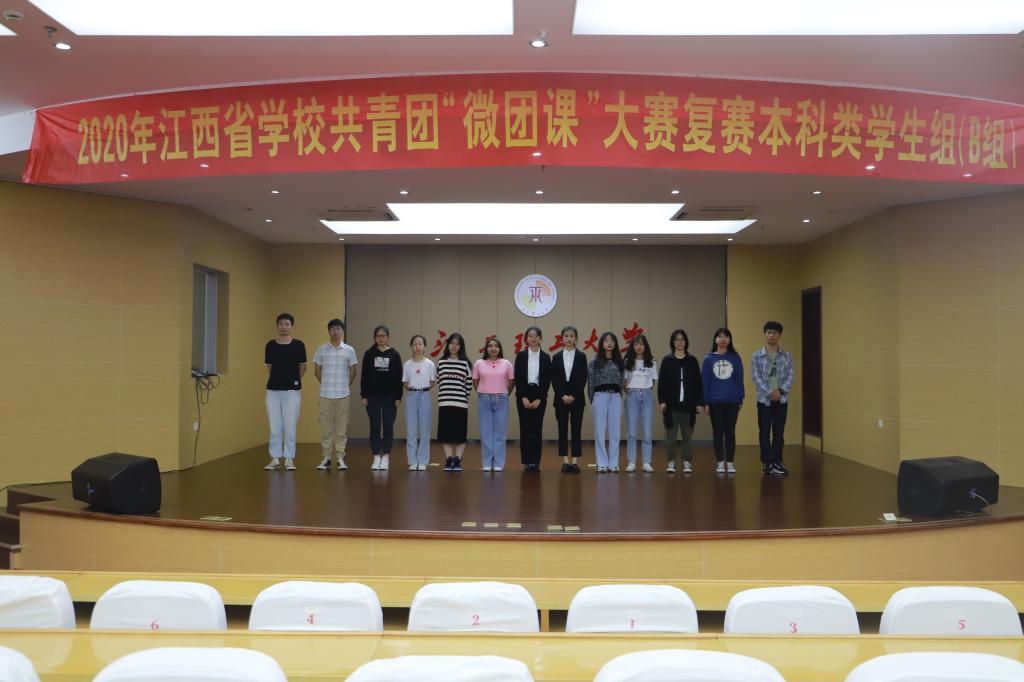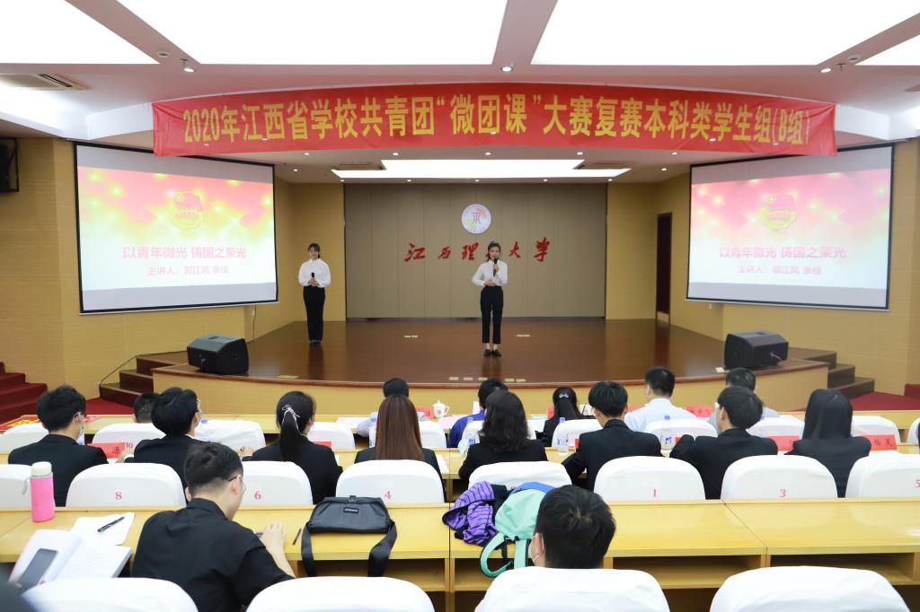 本网讯 11月20日至21日,由团省委主办、我校团委承办的江西省高校共青团“微团课”大赛本科类学生生组(B组)复赛在我校图书馆学术报告厅举行。来自我校、江西师范大学、南昌航空大学、新余学院、南昌职业大学、南昌师范学院、江西理工大学应用科学学院等15支参赛队伍参加了此次比赛。赣州团市委副书记钟海梅、南铁赣州车务段团委书记谢诚、赣南医学院团委书记彭磊、江西环境工程职业学院团委书记赵洁、江西应用职业技术学院团委书记谢宇飞担任本次大赛的专家评委。此外,现场还有由2020年省大骨班成员、各高校优秀学生团干、优秀学生代表等10位优秀青年学生代表组成的大众评委。校团委书记杨智勇出席了此次比赛,我校各学院(学部)代表聆听了此次大赛。