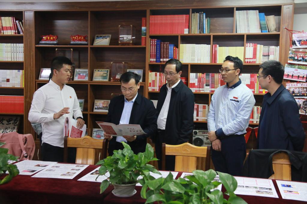 在赖华的带领下,钟小武一行还参观了党建活动室。赖华介绍了我院党建“三化”建设情况,重点介绍了对党史教育、学生党员发展及管理情况。