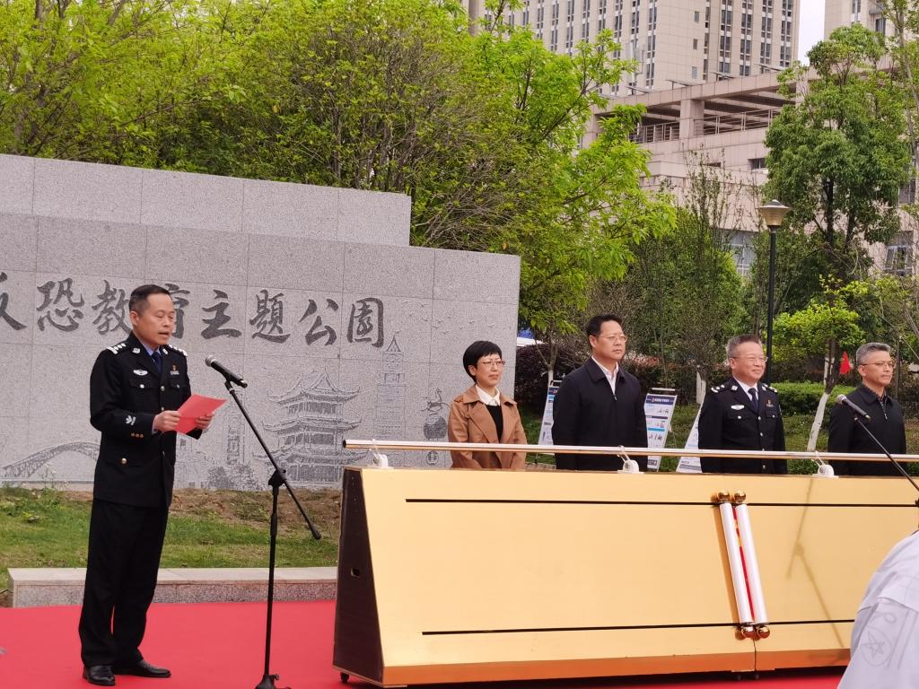 本网讯 在第八个“4·15”全民国家安全教育日到来之际,4月7日上午,全省首个反恐教育主题公园在赣州正式开园。我院、法学院、应急管理与安全工程学院以及外国语学院,赣州市反恐怖工作领导小组成员单位代表、市民代表、媒体记者代表等共计200余人参加。市公安局党委副书记、常务副局长严全民主持仪式。